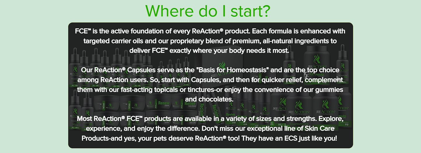 FCE™…engineered for the ECS.    The Endocannabinoid System (ECS) is the master controller for all of the body's systems. FCE™...